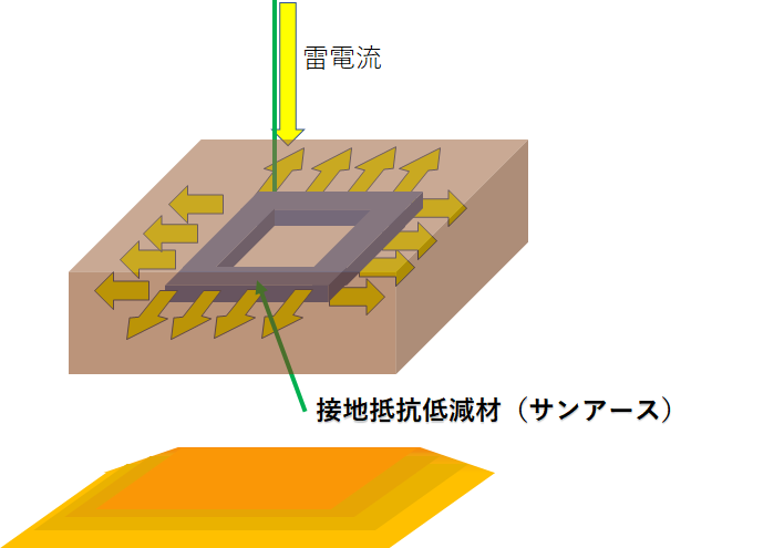 ・電極の表面積がサンアースによって大きくなることで大地との接触面積が増え、接地抵抗の低下及び雷電流をスムーズに大地へ放出することができます。