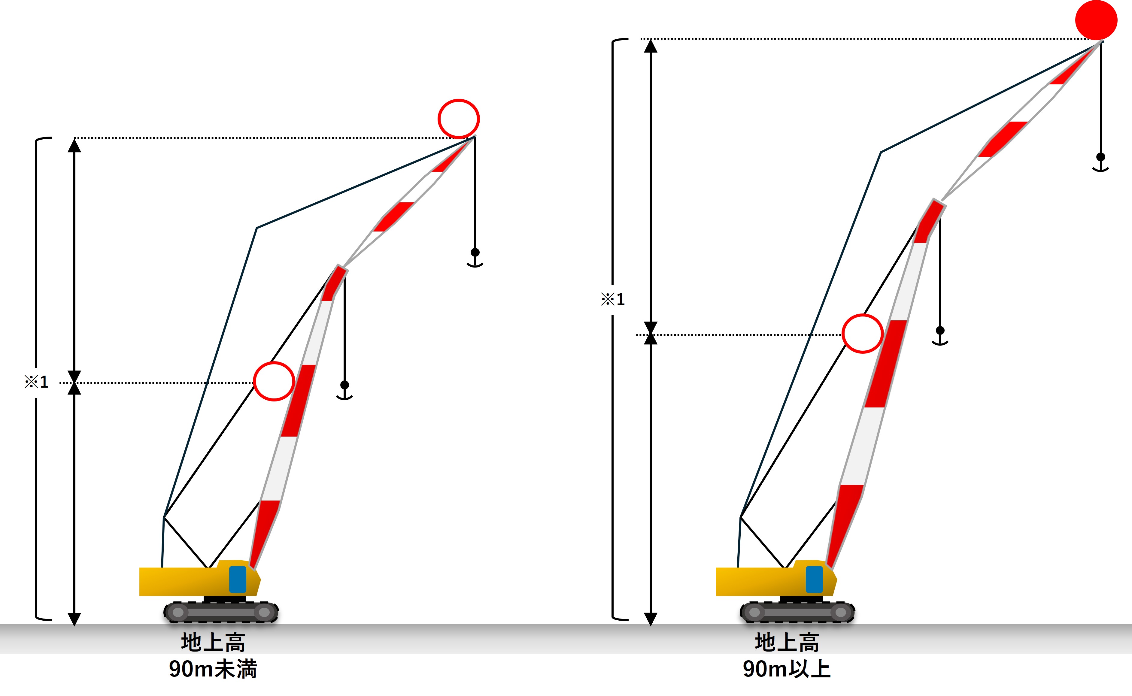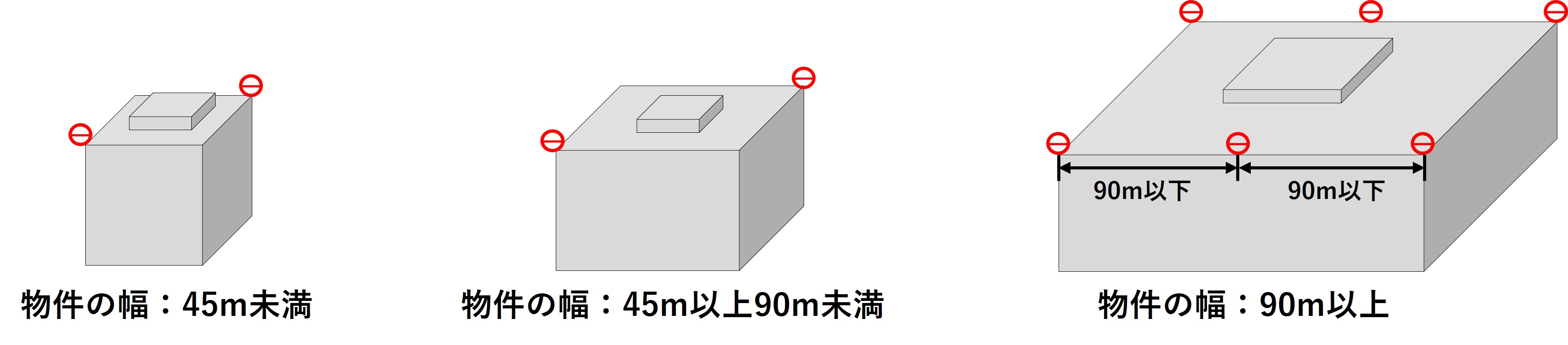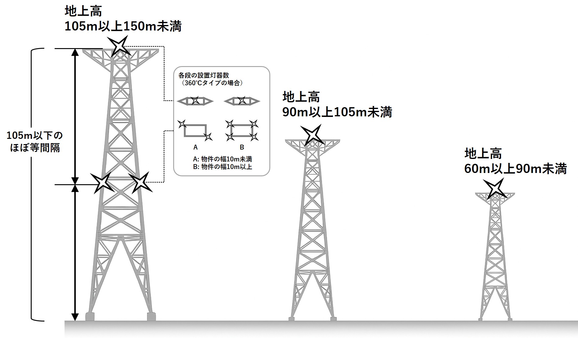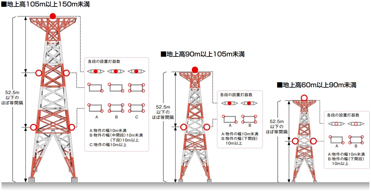 ※塔屋を含む150m以上の物件については「航空障害灯/昼間障害標識の設置等に関する解説・実施要領」をご参照ください。
