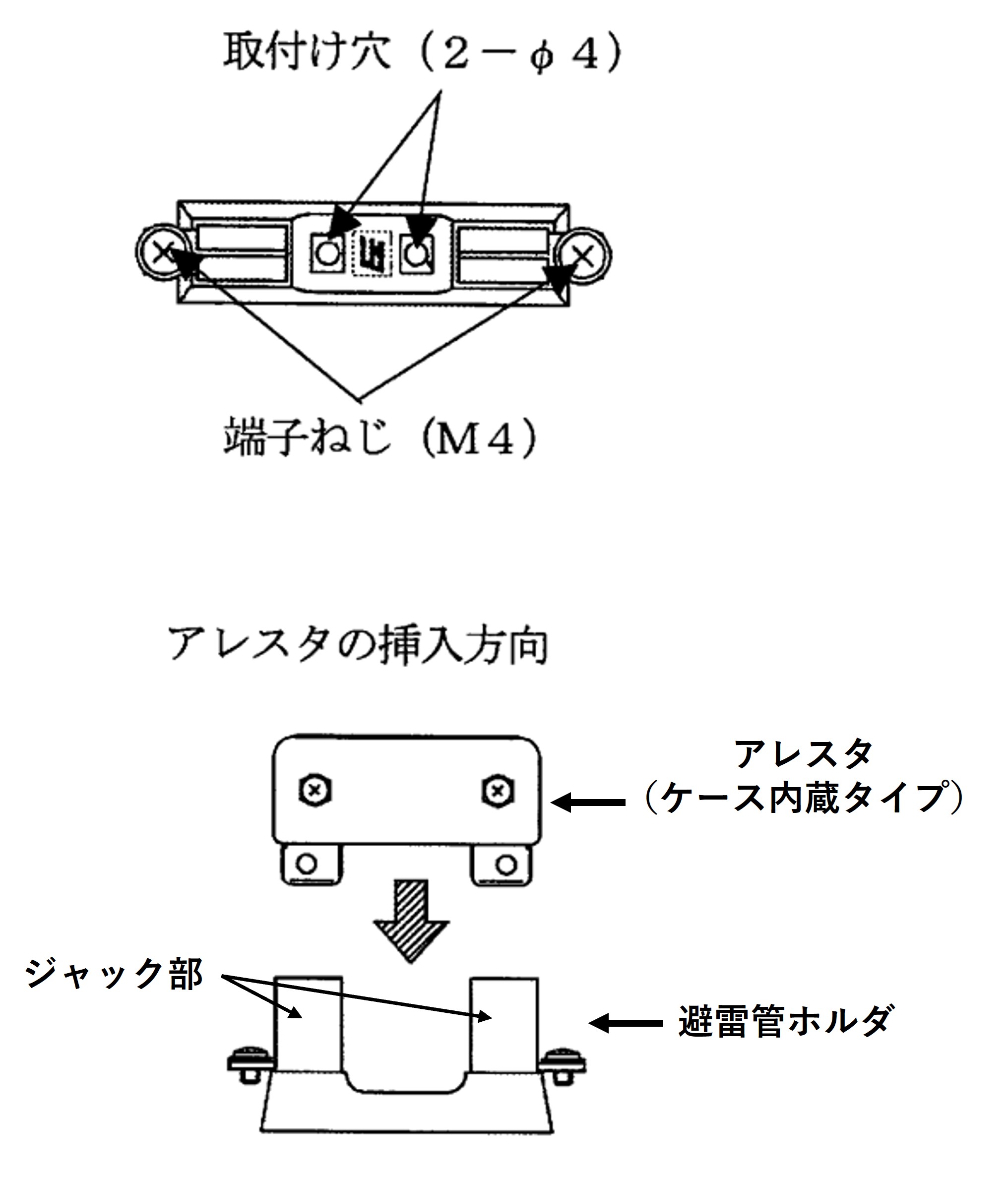 ※アレスタは電気的性能に方向性はありませんが、取付状態で銘板が見やすい方向に合わせて実装してください。 |