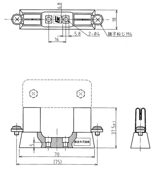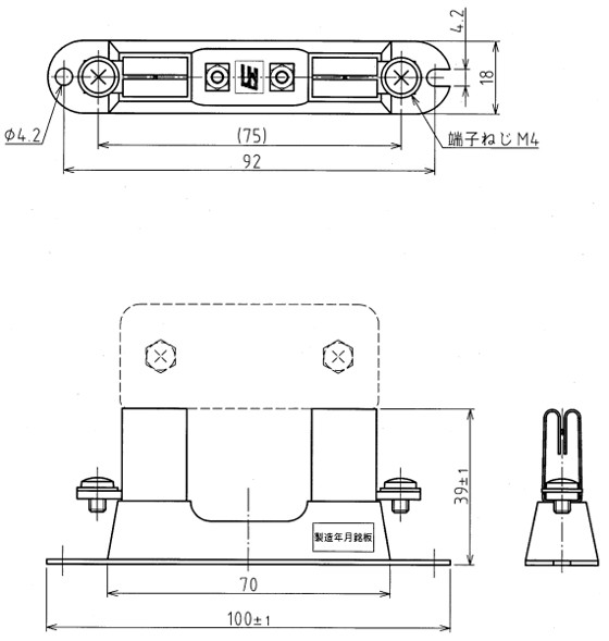 | 耐電圧 | 両端子~取付板間 | AC(50/60Hz)3kV・1分間 |